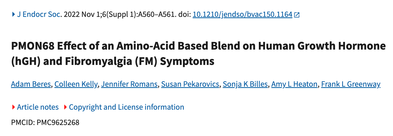 PMON68 Effect of an amino acid based blend on human growth hormone (hGH) and fibromyalgia (FM) symptoms