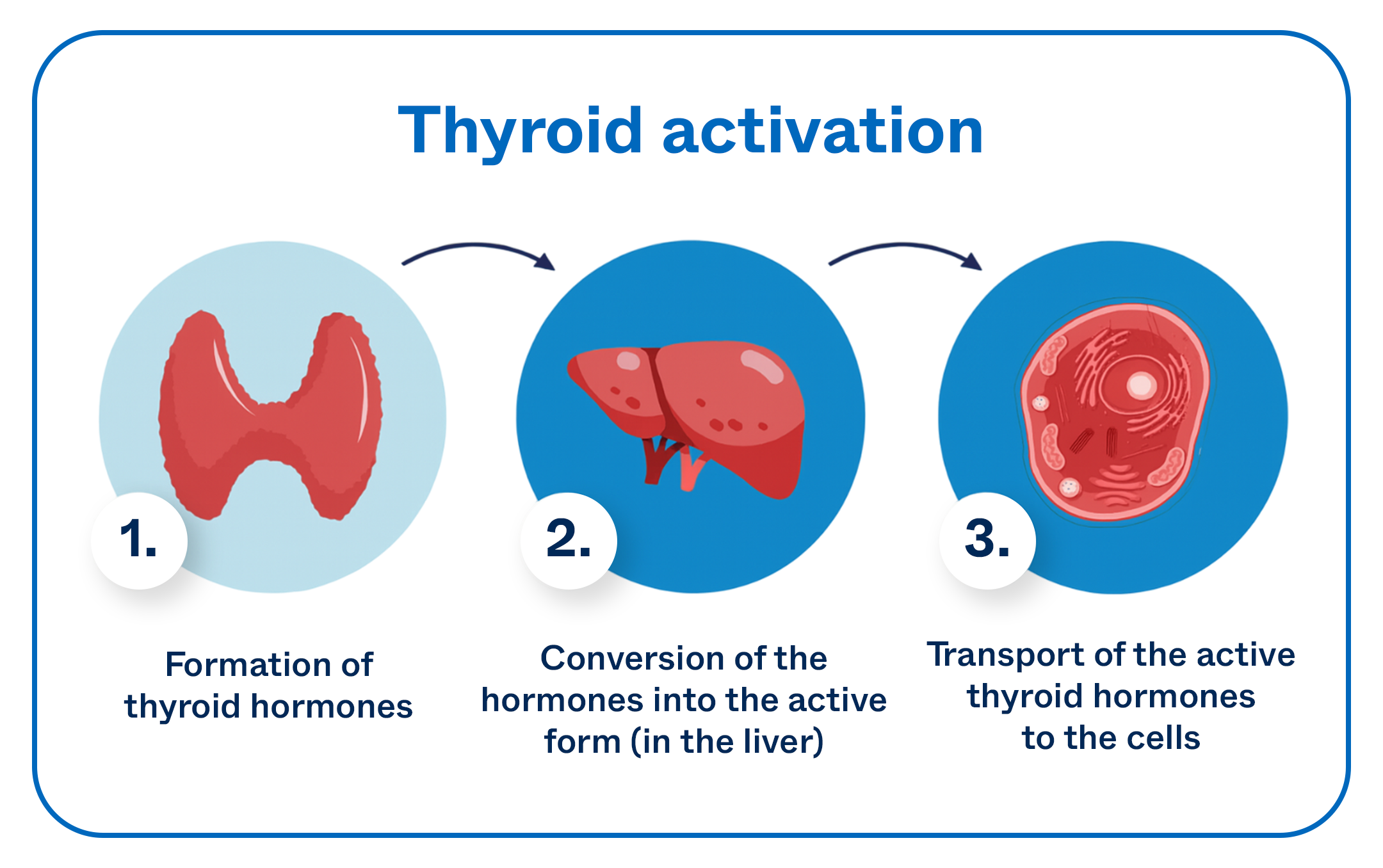 The thyroid hormones must be converted into an active form and then transported into the cells.